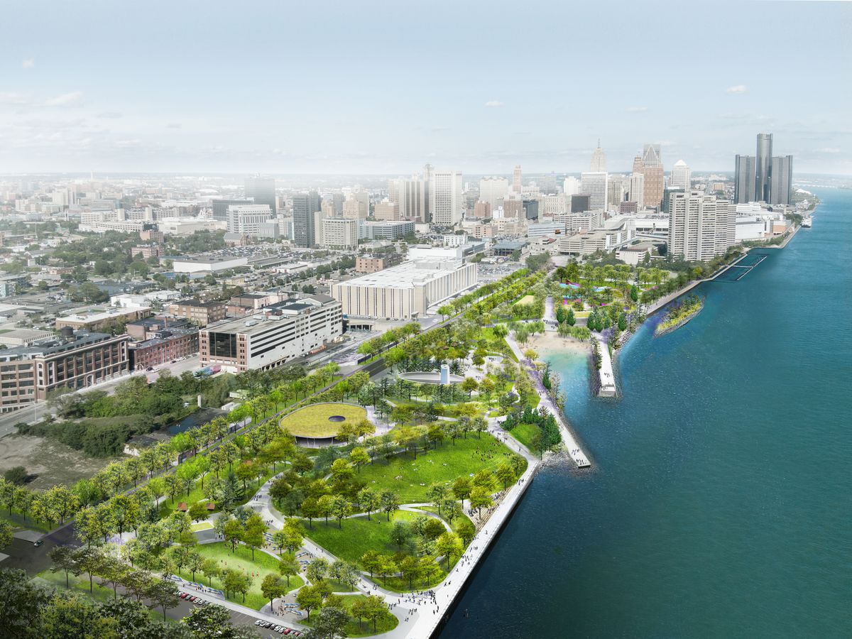 Vários projetos de reabilitação do centro, dos quais o Parque Campus Martius é um dos mais notáveis, revitalizaram setores da cidade. O Detroit International Riverfront inclui uma passarela de três milhas e meia às margens do rio, parcialmente concluída com uma combinação de parques, edifícios residenciais e áreas comerciais. O centro abriga o segundo hotel mais alto de todos os Estados Unidos, e o Detroit Marriott no Renaissance Center era o hotel mais alto do país em dezembro de 2013.