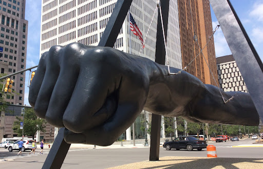Alguns dos monumentos mais famosos da cidade de Detroit incluem o Monumento a Joe Louis, o Monumento ao Legado do Trabalho de Michigan, o Monumento aos Soldados e Marinheiros de Michigan, o Memorial da Ferrovia Subterrânea Internacional e a Estátua da Espera. O Detroit Windsor Tunnel é o primeiro túnel de tráfego de duas nações que conecta as cidades de Detroit, Michigan, Estados Unidos, e Windsor, Ontário, Canadá. Além disso, Detroit tem a Ambassador Bridge, uma ponte pênsil internacional com pedágio sobre o rio Detroit que conecta as duas cidades. Essa ponte é a passagem fronteiriça mais transitada da América do Norte.